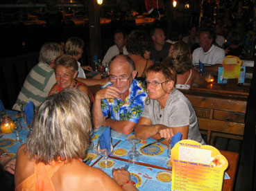 | Au restaurant de la marina le Mango Bay, nous nous retrouverons plus d'une trentaine de participants du rallye des îles du soleil pour faire la fête. | L'orchestre des "Blues Walkers" nous fera danser toute la nuit. Super. |