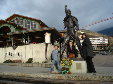 | 6 mars 2007. La mère par procuration de Jacques, Huguette, 84 ans, nous rejoint en voiture depuis son Château d'Aîlyes à Auch dans le Gers. Un exploit et une philosophie de la vie qui est un exemple pour nous tous. | Après une nouvelle visite du Château de Chillon, nous flânons sur les quais de Montreux, qui sait présenter de belle manière ses particularités musicales. Freddy Mercury a fière allure au bord du Lac Léman. |